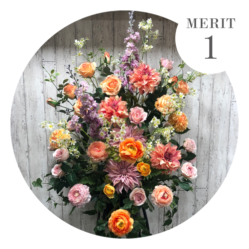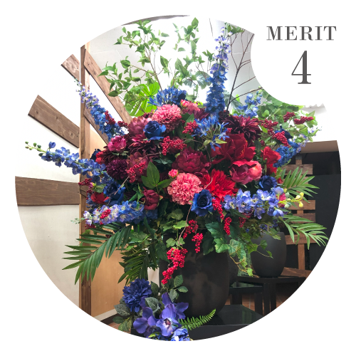 アーティフィシャルフラワーは店舗やクリニック、事務所などの開店・開業お祝いや、新築祝いにもおすすめです。