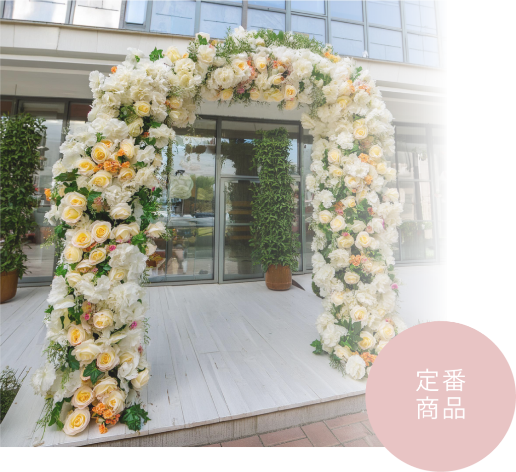 フラワーアーケードは、美しい花々で彩られたアーチ状の装飾が内覧会の来場者の心を魅了します。その華やかなデザインは、会場全体を一層魅力的に彩り、特別な空間を演出します。お客様のテーマや要望に合わせてカスタマイズが可能で、内覧会をより特別な体験に変えます。持続する美しさを誇るフラワーアーケードで、内覧会を印象的なものにしましょう。