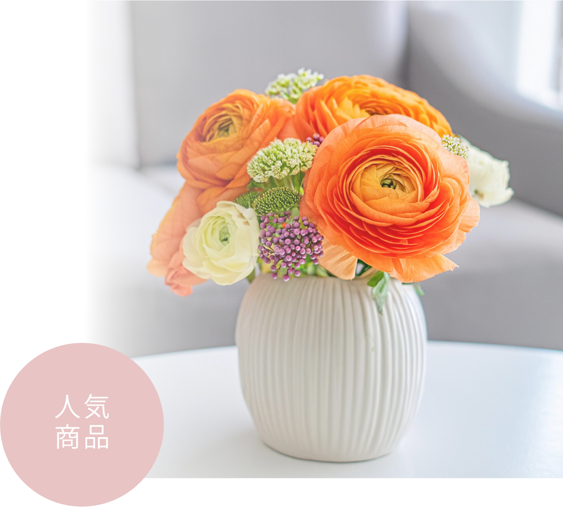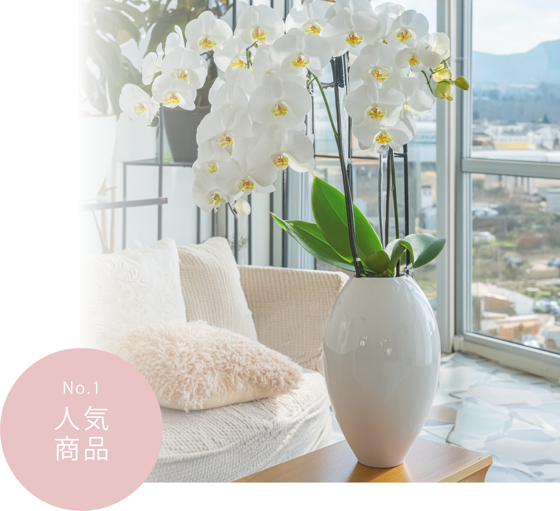 和洋問わずさまざまなインテリアにも合わせやすくお祝いに最適なお花です。