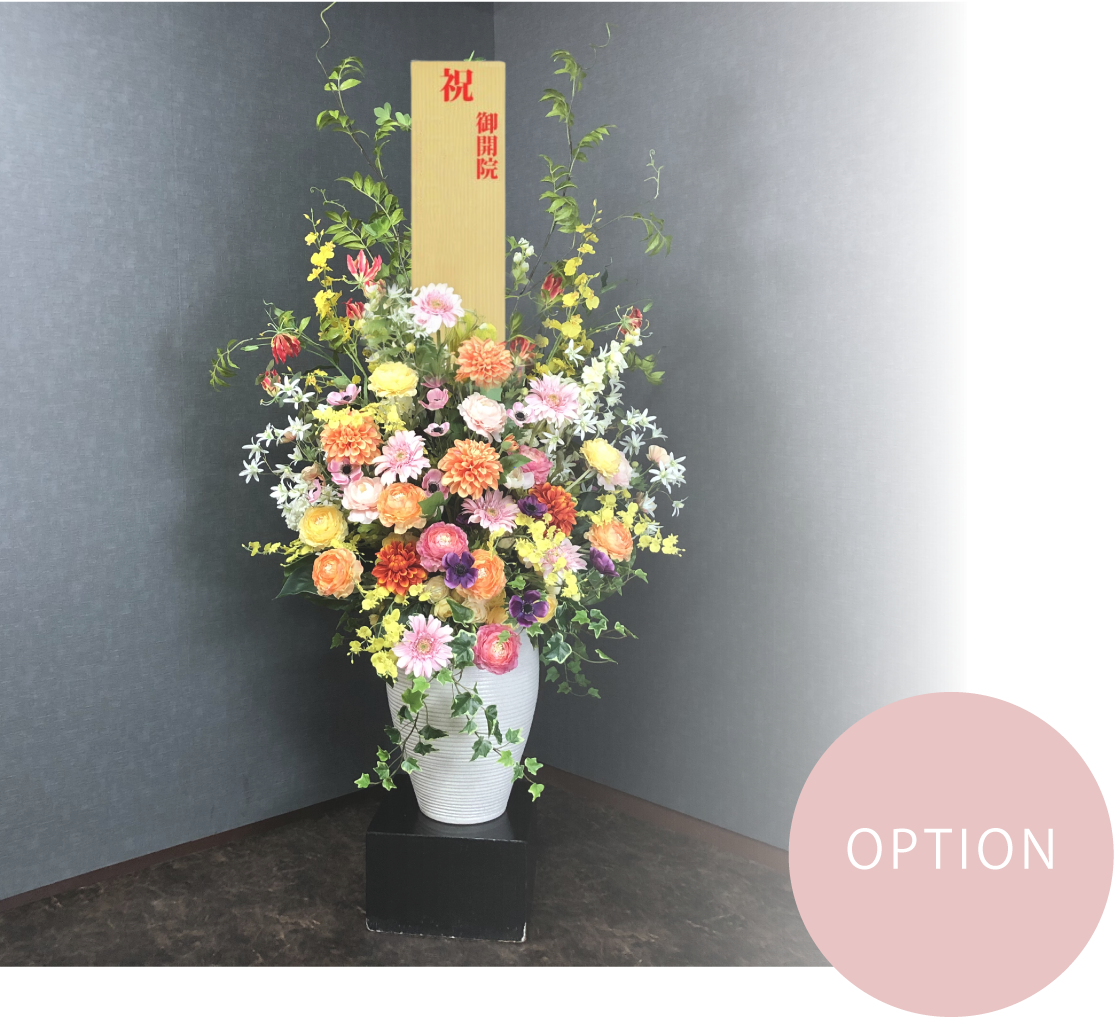 アーティフィシャルフラワーは店舗やクリニック、事務所などの開店・開業お祝いや、新築祝いにもおすすめです。